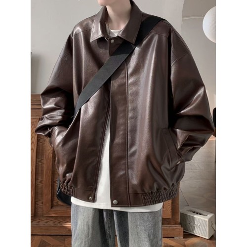 アメリカンレトロスタイルの革のアウター。男性用で、秋と冬に着る高級感があり、クールでスタイリッシュな潮牌、ゆったりした折り返し襟のジャケット
